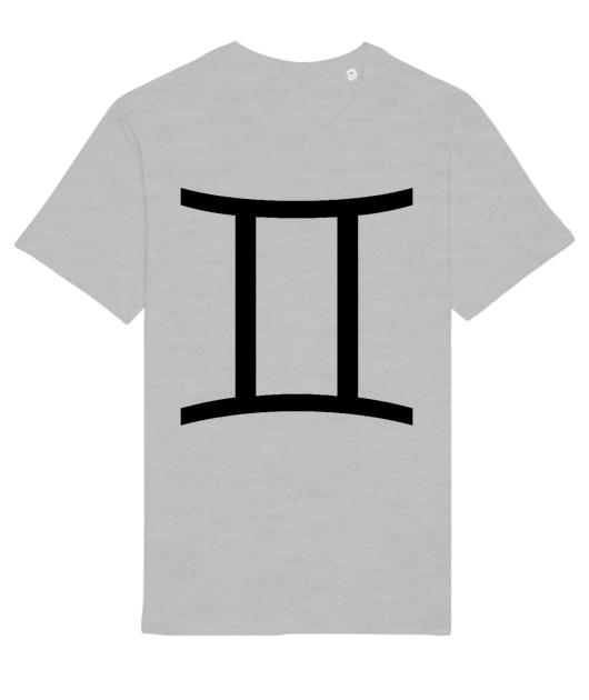 Le signe du Gémeaux, associé ici à sa couleur astrologique, le gris, qui mêle le noir et le blanc et exprime l'air, les nuages, la dualité.